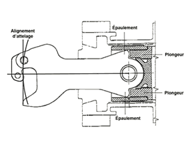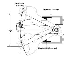Le dispositif de centrage limite le mouvement latéral de la barre d'attelage lorsque des forces générées longitudinales s'exercent en compression. Plus l'angle de la barre d'attelage est limité, plus les forces latérales qui s'exercent sur la voie au point d'interface roues/rail est réduit, d'où une réduction du risque de déraillement consécutif au renversement du rail. Les attelages sans dispositif de centrage permettent un débattement plus grand des attelages quand on manoeuvre dans les courbes serrées des cours de triage et des embranchements industriels. Lorsque les attelages sont en compression, l'angle des barres d'attelage peut être limité à ± 17 degrés lorsque l'attelage est pourvu de dispositif de centrage, alors qu'il peut atteindre ± 34 degrés lorsque l'attelage est dépourvu de ce dispositifNote de bas de page 4. Le constructeur des locomotives recommande l'installation de butées de traverse danseuseNote de bas de page 5 lorsque des locomotives dépourvues de dispositif de centrage des attelages font partie de trains qui comptent aussi des locomotives capables de générer un effort considérable de freinage rhéostatique.