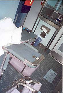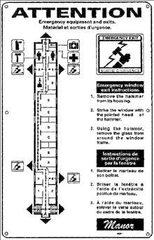 Pour quitter la voiture en cas d'urgence, les occupants peuvent passer soit par les portes situées aux bouts de la voiture, soit par des fenêtres d'issue de secours conçues spécialement à cette fin. Les fenêtres d'issue de secours sont censées être accessibles en tout temps. Or, en raison de la conception des fauteuils, on ne pouvait pas accéder en tout temps aux fenêtres d'issue de secours. En effet, les fauteuils pliants en question, pesant plus de 66 livres, n'étaient pas fixés au plancher et ont été projetés à l'intérieur des couchettes des voitures 8717, 8340 et 8319. Ces fauteuils auraient pu empêcher les portes de s'ouvrir, étant donné que ces portes s'ouvrent vers l'intérieur, et auraient pu gêner l'accès aux fenêtres d'issue de secours qu'on trouve dans certaines des couchettes des voitures (voir la photo 4).
