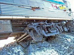 - Du fait que le train ait décéléré de façon relativement régulière après avoir déraillé, et en raison de la robustesse du matériel roulant fait d'acier inoxydable, les blessures subies par les voyageurs ont été réduites au minimum, de même que les dommages subis par le matériel roulant.