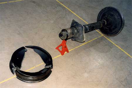 L'essieu monté, comprenant la roue cassée, les quatre fragments de jante de roue récupérés ainsi que les distributeurs des freins du wagon-tombereau WC 65061, a été envoyé au Laboratoire technique du BST pour fins d'analyse (rapports techniques LP 027/2005 et LP 043/2005).