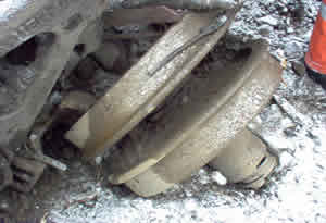- Tous les ensembles alésage de roue / portée de calage qui ont été examinés montraient des signes d'usure par frottement et des signes d'oxyde de fer, indiquant une légère flexion due aux forces d'inclinaison des roues qui se sont exercées entre l'alésage de la roue et la portée de calage. Plus la flexion était forte, plus la quantité d'oxyde de fer était grande (voir la photo 4).