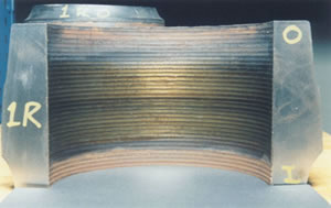 En octobre 2001, on a remarqué une augmentation de la fréquence des cas de roues décalées (8) et des déraillements (5) dus à des roues lâches dans des essieux montés provenant de l'atelier de roues Transcona. Le CN a commandé des études à des experts de l'extérieur, à qui il a demandé de trouver la cause de la fréquence anormalement élevée des défaillances d'essieux montés pendant le serviceNote de bas de page 5,Note de bas de page 6,Note de bas de page 7. On a d'abord cru que le problème était lié à la fabrication des roues, étant donné que la plupart des roues en cause avaient été fabriquées par Griffin Wheel. Toutefois, les études ont invalidé cette hypothèse. Les études, qui ont pris fin en février 2002, ont établi des liens entre les événements dus à des roues lâches et le processus modifié d'alésage des roues qui avait été utilisé à l'atelier de roues Transcona du CN entre avril 1998 et février 2001. Les études ont permis de déterminer que :