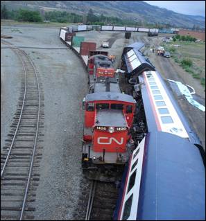Le 21 mai 2006 vers 19 h 10, heure avancée du Pacifique, la manœuvre Kamloops 1230 du Canadien National (manœuvre d'aiguillage YKSS30), laquelle remorquait une tranche de wagons vers le sud en direction de la voie de raccordement Okanagan, a heurté un train de voyageurs inoccupé, en l'occurrence le train no RMV P61051-21 de la Rocky Mountaineer Vacations Inc., qui sortait de la voie de raccordement Okanagan et qui était poussé vers le nord, en direction de la voie KF21 du triage Kamloops. Quatre voitures à voyageurs ont déraillé, et la locomotive no 1420 du Canadien National a subi des dommages considérables. Personne n'a été blessé.