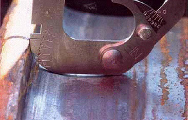 Après l'accident, les roues et les ressorts du bogie avant, du bout B, de la voiture no RMR 3237 ont été inspectés à l'atelier d'entretien de la RMV, à Kamloops, le 16 juin 2006. On a aussi examiné les dossiers d'entretien mécanique de la voiture. Les roues de la voiture étaient des roues Griffin de 36 pouces, d'une capacité de 100 tonnes. Des signes de glissement sur les tables de roulement et d'usure verticale du boudin ont été relevés sur la roue R1, en l'occurrence la roue avant. Une bande circulaire de fissures superficielles orientées selon un angle de 55 degrés par rapport au boudin, dénotait un possible braquage. Ces fissures sont due à la surchauffe de roues causées par le frottement ou à des ruptures par fatigue de contact des couches superficielles du matériau des roues lorsque celles-ci sont soumises à une déformation plastique extrêmeFootnote 7. Cette condition peut faire en sorte que les boudins des roues exercent des forces latérales accrues le long de la face intérieure du rail et de la pointe d'aiguille.