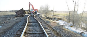 - Le 29 janvier 2007, alors que la température était d'environ −14 °C, on a ajouté une longueur de 9 pouces au rail est pour réparer une rupture d'éclissage survenue au point milliaire 202,80. Le personnel d'entretien de la voie prévoyait de rajuster la longueur du rail au printemps, avant l'arrivée du temps chaud.