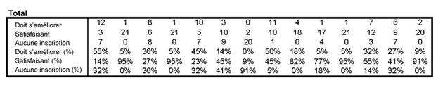 - Chaque catégorie identifiée au numéro 2 ci-dessus;