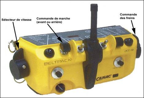 La section 6 des Instructions générales d'exploitation du CN, qui régit l'utilisation du système Beltpack, définit un opérateur de système Beltpack comme un membre du personnel de l'Exploitation qui, grâce à sa formation, son expérience et ses connaissances, est qualifié pour effectuer des manœuvres et pour commander à distance la locomotive à l'aide de la technologie Beltpack. Lors d'une opération où deux personnes se transfèrent la maîtrise d'un train, la personne qui a la maîtrise a le plein contrôle de la vitesse, de la direction et des freins de la locomotive, et peut voir la commande choisie sur un petit écran. La vitesse n'est pas indiquée. Le système Beltpack indique seulement la vitesse désirée. L'accélération, la force de freinage et la distance de freinage nécessaire ne sont pas indiquées.