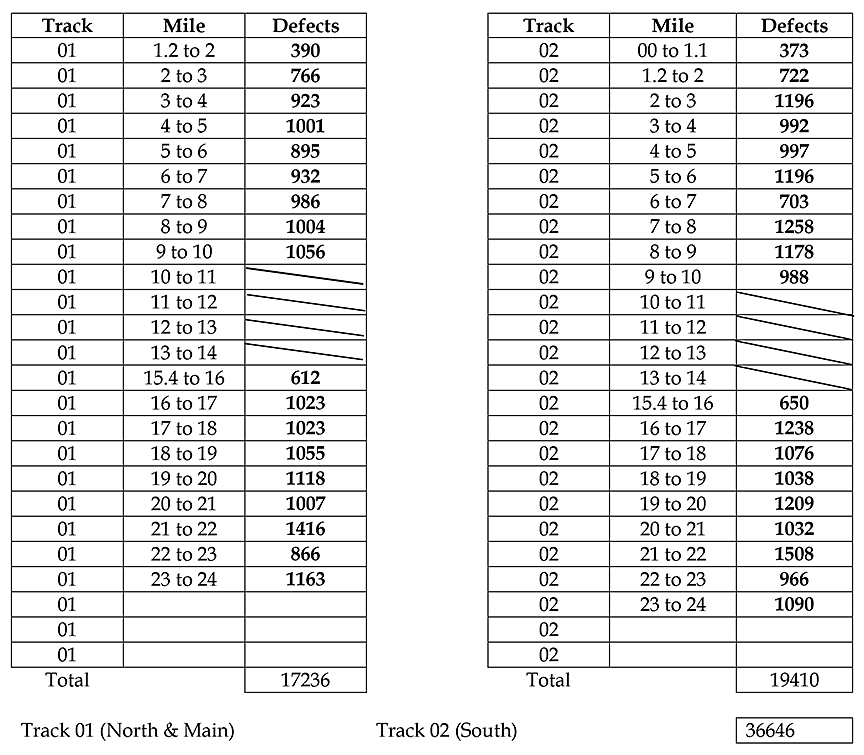 - Nivellement de 62 milles de voie (au moyen d'une bourreuse Mark IV);