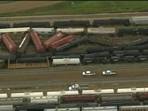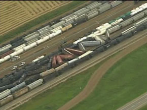 La manœuvre 602 parcourt environ 12 longueurs de wagon sur la voie VC-64, à une vitesse de 9 mi/h, lorsque le mouvement entre en collision avec un groupe de 46 wagons vides immobilisés (freins à air serrés) qui a été placé sur la voie environ 2 ½ heures plus tôt. La collision entraîne le déraillement de 43 wagons, 17 chargés et 26 vides. Parmi les wagons déraillés se trouvent 8 wagons de la manœuvre 602, 8 wagons immobilisés sur la voie VC-64, 8 wagons immobilisés sur la voie VC-62, 9 wagons immobilisés sur la voie VC-65, 5 wagons immobilisés sur la voie VC-66 et 5 wagons immobilisés sur la voie VC-67 (voir les photos 2 et 3). Onze wagons ont été détruits. Voici une liste des wagons en transport de marchandises dangereuses qui font partie de l'accident :