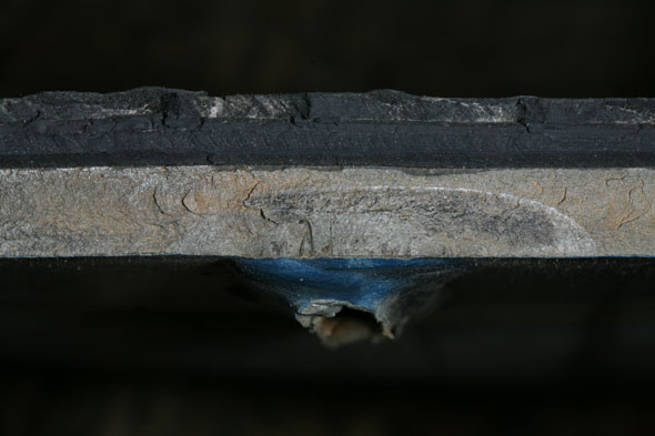 Le revêtement intérieur de la citerne était en bon état, sans dégradation manifeste et adhérait bien à la paroi de la citerne. On a retiré du wagon des portions de sa paroi contenant des surfaces de rupture pour les soumettre à une analyse détaillée au laboratoire du BST.