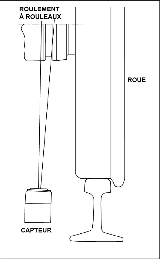Habituellement, les WIS se situent à une distance de 15 à 30 milles sur la voie principale. Chaque système comprend normalement un détecteur de roulements chauds, également connu sous le nom de détecteur de boîtes chaudes (DBC), un détecteur de roues chaudes et un détecteur de pièces traînantes. Quand un train traverse un DBC, un détecteur infrarouge analyse chaque roulement à rouleaux pour tenter d'y déceler la présence de chaleur (voir la figure 4). Le détecteur mesure et enregistre la température des roulements en millimètres (mm), chaque mm de chaleur correspondant à 12 ° Fahrenheit (oF) au-dessus de la température ambiante. Comme les DBC ne sont assujettis à aucune exigence réglementaire, chaque chemin de fer établit et maintient ses propres seuils à l'égard du système et des alarmes pour les roulements à rouleaux qui ont surchauffé.