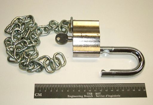 - L'utilisation de cadenas d'aiguillage à haute sécurité a été l'un des résultats de l'enquête sur la vitesse des trains de voyageurs de VIA par la Commission canadienne des transports (Commission). La tenue de cette enquête a fait suite au déraillement d'un train de voyageurs de VIA, en juin 1984, qui a résulté d'un acte de vandalisme sur un aiguillage de voie principale dans la subdivision Smith Falls (Ontario) du CN. À la suite de cet accident, la Commission a publié plusieurs ordonnances (1986). Ces ordonnances ont rendu obligatoire l'installation de cadenas d'aiguillage à haute sécurité pour les aiguillages de voie principale à manœuvre manuelle :