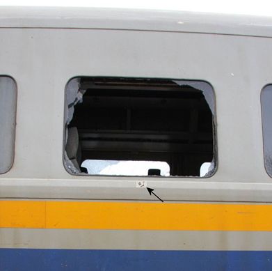 Photo 3. Fenêtre d'issue de secours utilisée sur la voiture VIA 3454 (source : police régionale d'Halton)
