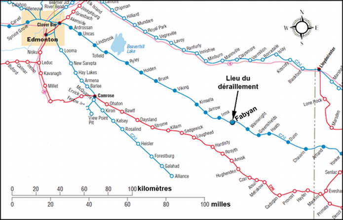 Le 21 janvier 2012, à 16 h 17, heure normale des Rocheuses, le train de marchandises M30141-20 de la Compagnie des chemins de fer nationaux du Canada (Canadien National) roulant vers l'ouest de Wainwright (Alberta) à Edmonton (Alberta) déraille : 31 wagons quittent les rails à l'extrémité est du pont de Fabyan (point milliaire 149,21) sur la subdivision Wainwright, près de Fabyan (Alberta). Les wagons déraillés étaient chargés de céréales; 17 sont tombés du pont sur le côté nord, endommageant plusieurs jambes de pylône et des membrures de contreventement en acier. La voie a été détruite sur une distance d'environ 1760 pieds. Il n'y a pas eu de blessés.