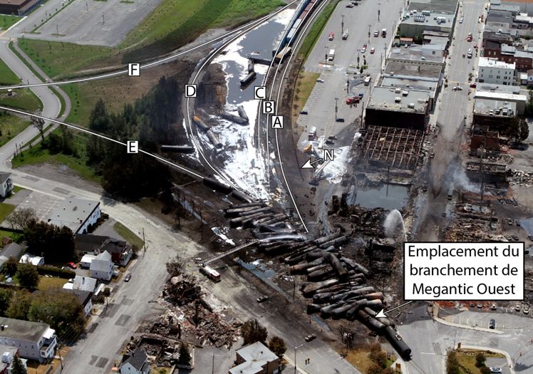 • le centre-ville de Lac-Mégantic, où le train a déraillé;