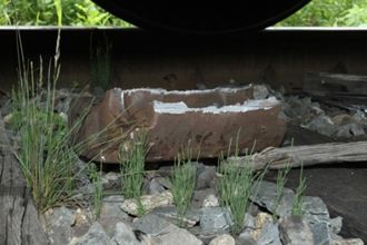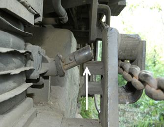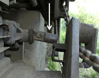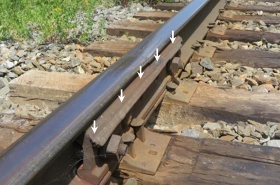 L’aiguillage est de la voie d’évitement se trouvait au point milliaire 6,67, et la voie d’évitement avait une longueur de 7160 pieds. Au moment de l’accident, plusieurs wagons y étaient entreposés. La voie d’évitement était munie d’un dérailleur spécialNote de bas de page 10, situé à environ 230 pieds à l’ouest de l’aiguillage (photo 3). Un dérailleur est un dispositif mécanique de sécurité qui repose au sommet du rail et sert à faire dérailler du matériel parti à la dérive. Le dérailleur était verrouillé en position de déraillement pour protéger la voie principale de tout mouvement involontaire du matériel sur la voie d’évitement.