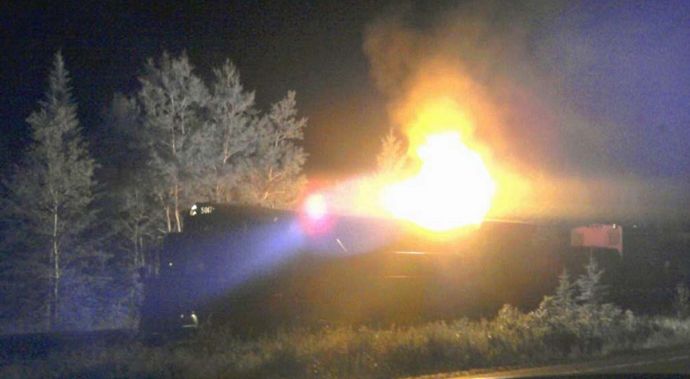 À 23 h 40, un préposé du service 911 a reçu un appel signalant un incendie à bord d’un train à Nantes. Le service d’incendie de Nantes a répondu à l’appel et s’est rendu sur les lieux, et la Sûreté du Québec (SQ) a appelé le CCF de Farnham pour informer la compagnie de l’incendie. Après des tentatives infructueuses de la MMA de joindre un employé qui était un ancien ML et mécanicien, un chef garde-voie de la MMA a été envoyé à la rencontre du service d’incendie à Nantes. Lorsque le chef garde-voie est arrivé sur les lieux, les pompiers lui ont indiqué qu’ils avaient coupé le moteur de la locomotive de tête à l’aide du coupe-carburant d’urgence, ce qui avait eu pour effet d’éteindre l’incendie en coupant l’alimentation en carburant. Les pompiers avaient aussi placé les disjoncteurs à l’intérieur de la cabine de la locomotive en position ouverte pour éliminer une source possible d’étincelles. Ces mesures étaient conformes aux instructions ferroviaires.