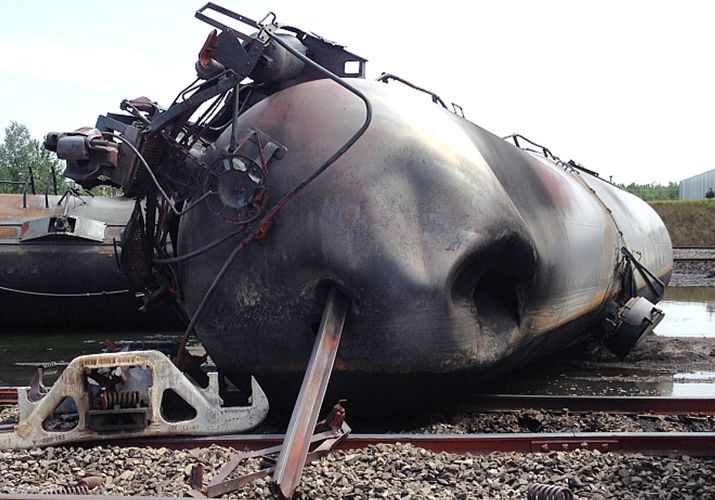 Photo 1. Le site du déraillement à Lac-Mégantic après l'accident