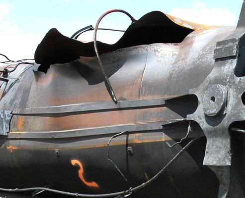 • Les rails étaient recourbés et tordus, détachés des selles de rail et déplacés de façon aléatoire. En raison de l’intensité de l’incendie, la plupart des composants de la voie étaient lourdement endommagés.