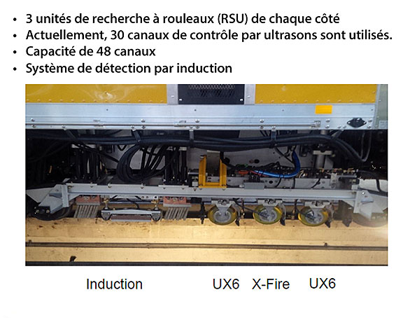 - En plus des contrôles par ultrasons, SRS utilise la technologie électromagnétique (par induction). Dans le passé, le matériel de contrôle par induction était trop gros pour être installé sur des véhicules rail-route. SRS a toutefois conçu un système à induction monté sur une plate-forme rail-route. Aujourd'hui, 60 % des voitures du parc de SRS sont dotées de la technologie par induction. Dans des conditions normales, la technologie aux ultrasons ou la technologie de contrôle par ultrasons et induction peuvent effectuer des contrôles à une vitesse entre 5 et 20 mi/h, selon l'environnement et l'état de la voie.