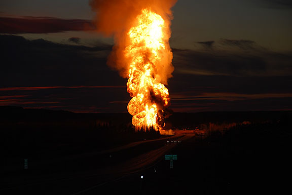 Le 19 octobre 2013, à 1 h, heure avancée des Rocheuses, 13 wagons-citernes du train de marchandises M30151-18 du Canadien National faisant route vers l’ouest depuis Edmonton (Alberta) jusqu’à Vancouver (Colombie-Britannique), déraillent au point milliaire 57,25 de la subdivision Edson, près de Gainford (Alberta). Des 13 wagons-citernes déraillés, 4 contiennent du pétrole brut et 9 du gaz de pétrole liquéfié (GPL). Deux des wagons-citernes de GPL subissent des brèches et s’enflamment. Un troisième wagon-citerne de GPL prend feu quand du produit s’échappe par sa soupape de sécurité. Le déraillement détruit environ 600 pieds de voie. Il n’y a pas de blessés. On a dû évacuer 106 maisons situées dans le voisinage du déraillement.