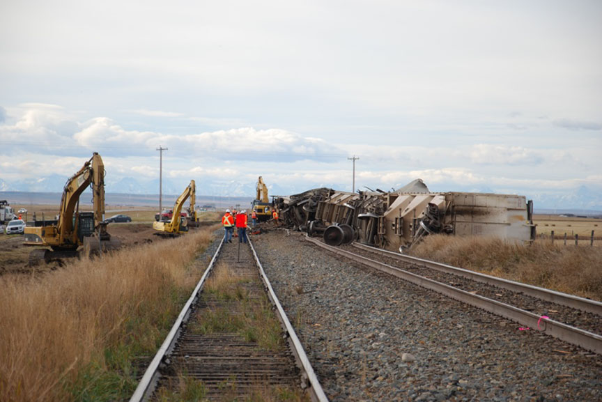 R11C0118 – Le 21 octobre 2011, le train de marchandises Q11531-18 du CN, au départ de Mirror (Alberta) et à destination de Calgary (Alberta), roulait vers le sud dans la subdivision de Three Hills lorsque 13 wagons ont déraillé au point milliaire 13,2, près d'Alix Junction (Alberta). Les wagons déraillés transportaient des conteneurs, dont certains étaient chargés de marchandises dangereuses. Quelque 900 litres d'acide phosphorique se sont déversés et 400 pieds de voie ont été détruits.