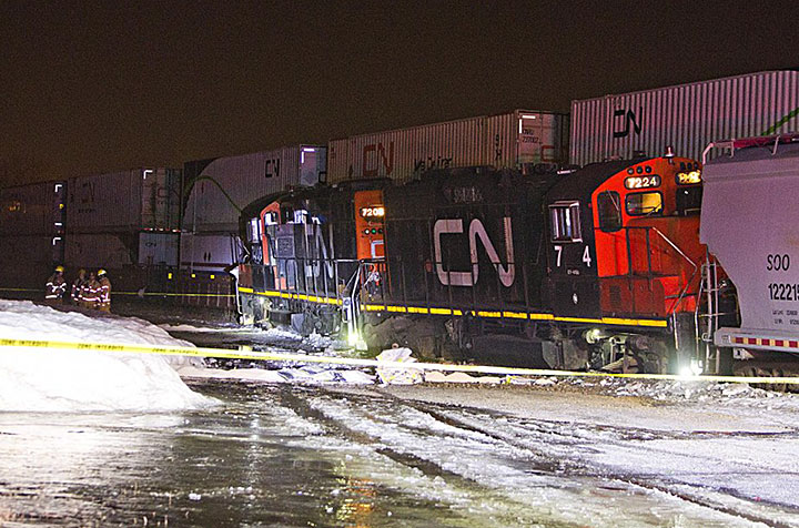 Le 23 février 2014, un train de triage du Canadien National, contrôlé par un système de loco-commande, circulait avec 25 wagons chargés sur la voie de service « voie de marchandises » de la subdivision de Montréal, à Montréal (Québec). Vers 0 h 5, le train de triage a franchi un signal d'arrêt et est entré en collision avec le train Q12111-21 qui roulait sur la voie nord. Les 2 trains ainsi que les voies qu'ils occupaient ont été endommagés. Il n'y a eu aucun blessé.