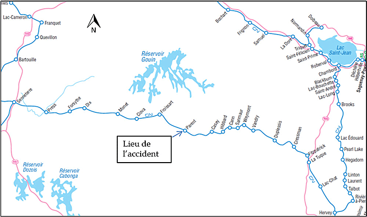 Le jour de l'accident, les 4 occupants du véhicule se rendaient à Lac-Simon (Québec), situé à environ 3 heures de route de Parent (Québec). Vers 16 h 30, les occupants se sont arrêtés à un restaurant de Parent situé en face de la gare de Parent pendant environ une heure.