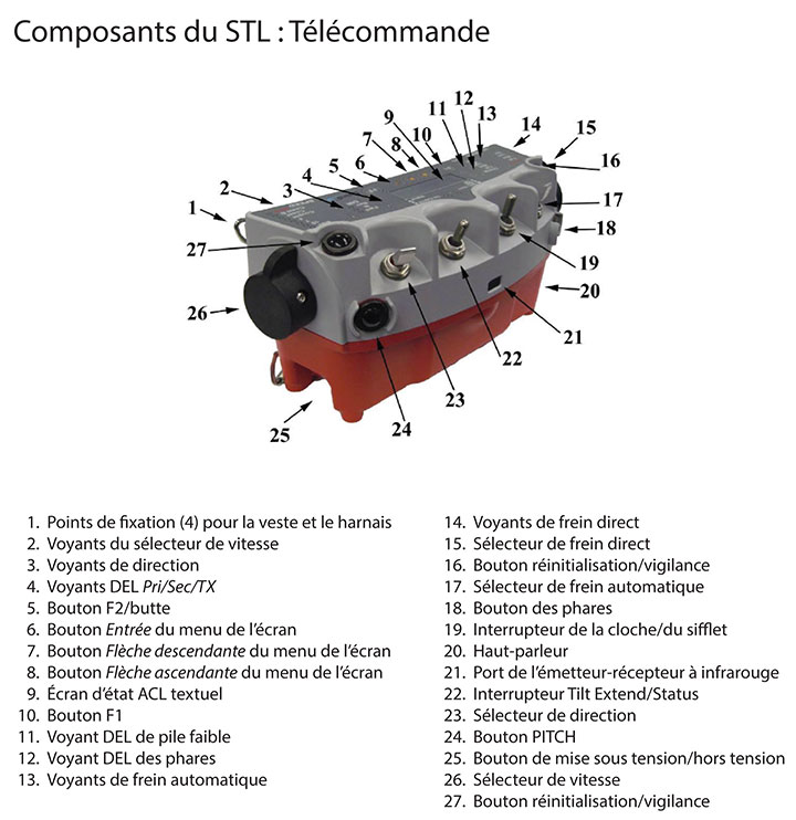 L'unité de commande de l'opérateur permet à une équipe de triage de commander sans ML une locomotive munie de ce système. Les membres de l'équipe peuvent transférer entre eux la commande de la locomotive au besoin, mais 1 seul membre de l'équipe peut en avoir la commande à un moment donné. L'ordinateur de commande de bord du STL reçoit et traite les commandes transmises par radio depuis l'unité de commande de l'opérateur.