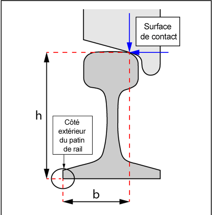 - En raison de l'importante usure latérale du rail haut, le point de contact roue-rail s'est déplacé vers le côté extérieur, ce qui a réduit la stabilité latérale du rail.