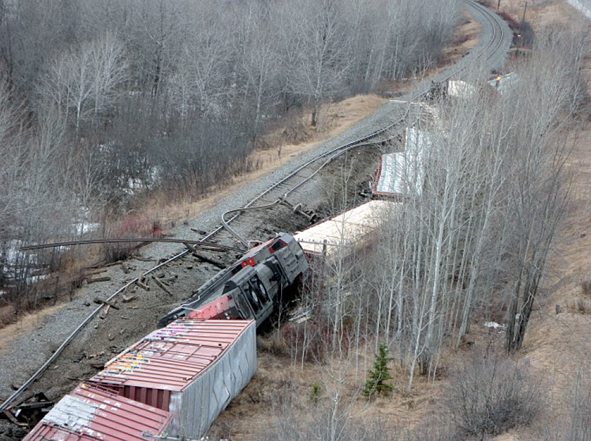 - Les locomotives de tête et les 60 premiers wagons étaient séparés du convoi; le 60e wagon s'est immobilisé sur la voie principale à environ 1500 pieds à l'ouest du lieu du déraillement.