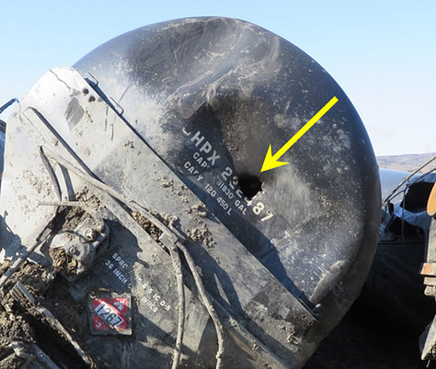 - Si les wagons-citernes ne sont pas adéquatement protégés à l'aide de boucliers protecteurs complets, il y a un risque accru de perforation de la tête en cas de déraillement.