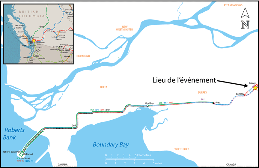 Figure 1. Lieu de l'événement (Source : Association des chemins de fer du Canada, Atlas du rail canadien, avec annotations du BST)