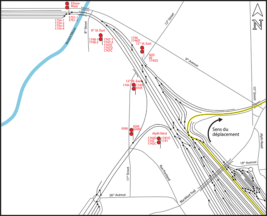 Le 18 février 2016, vers 5 h 46Note de bas de page 1, le train de marchandises 293-16 (le train) du Chemin de fer Canadien Pacifique (CP) est arrivé au triage Alyth à Calgary (Alberta) (figure 1) en provenance de Medicine Hat (Alberta). L'équipe avait pour instruction de garer les 39 wagons de tête dans la voie N11.