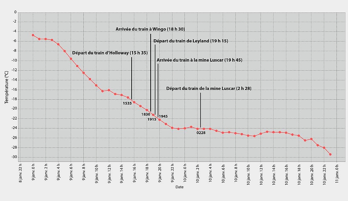• Lorsque la température se situe entre −22 °C et −25 °C, les opérations avec des wagons chargés de charbon sont effectuées uniquement le jour.