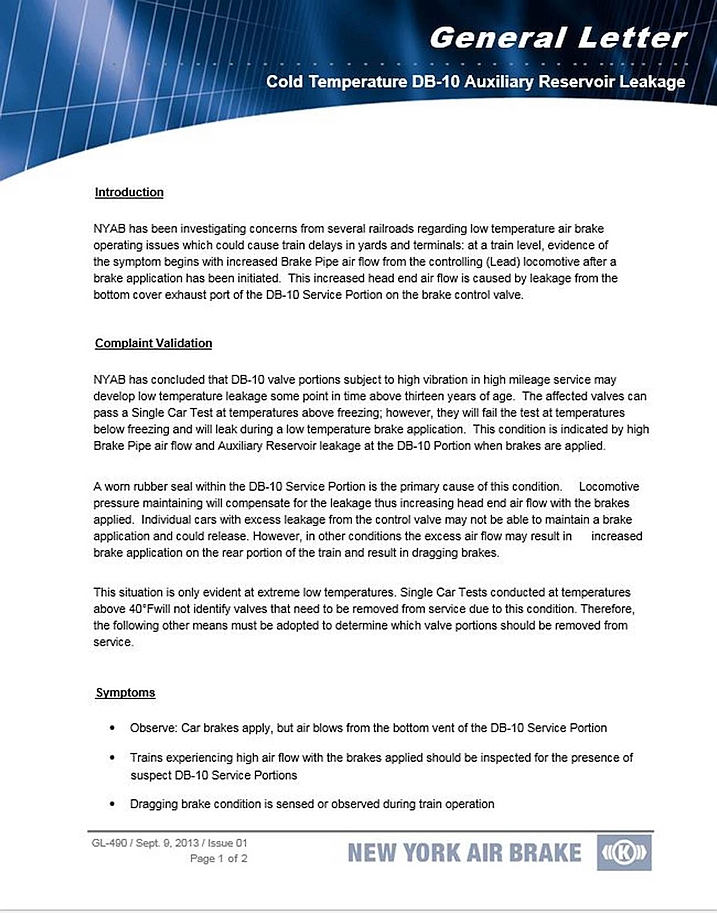 Il est bien connu dans l’industrie ferroviaire canadienne que le temps froid peut entraîner des fuites d’air des systèmes de freinage pneumatique des wagons de marchandises. Les joints et les garnitures de caoutchouc deviennent rigides et le métal se contracte, ce qui entraîne des fuites d’air sous pression.