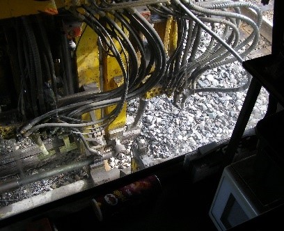 Lors de l’événement, la bourreuse Unimat était manœuvrée avec son extrémité allongée vers l’avant (figure 5). Assis au poste de travail, l’apprenti opérateur pouvait estimer visuellement la portée des bourroirs déployés en se penchant vers l’avant et en regardant par la fenêtre d’observation (verre transparent) située au bas du poste de travail (figure 6).