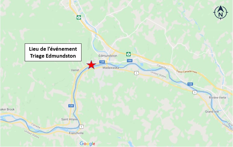 Le 4 décembre 2018, vers 8 h 27Note de bas de page 1, le train de manœuvre L57211-04 de la Compagnie des chemins de fer nationaux du Canada (CN) effectuait des opérations au triage Edmundston, au point milliaire 1,03 de la subdivision de Pelletier du CN à Edmundston (Nouveau-Brunswick) (figure 1).