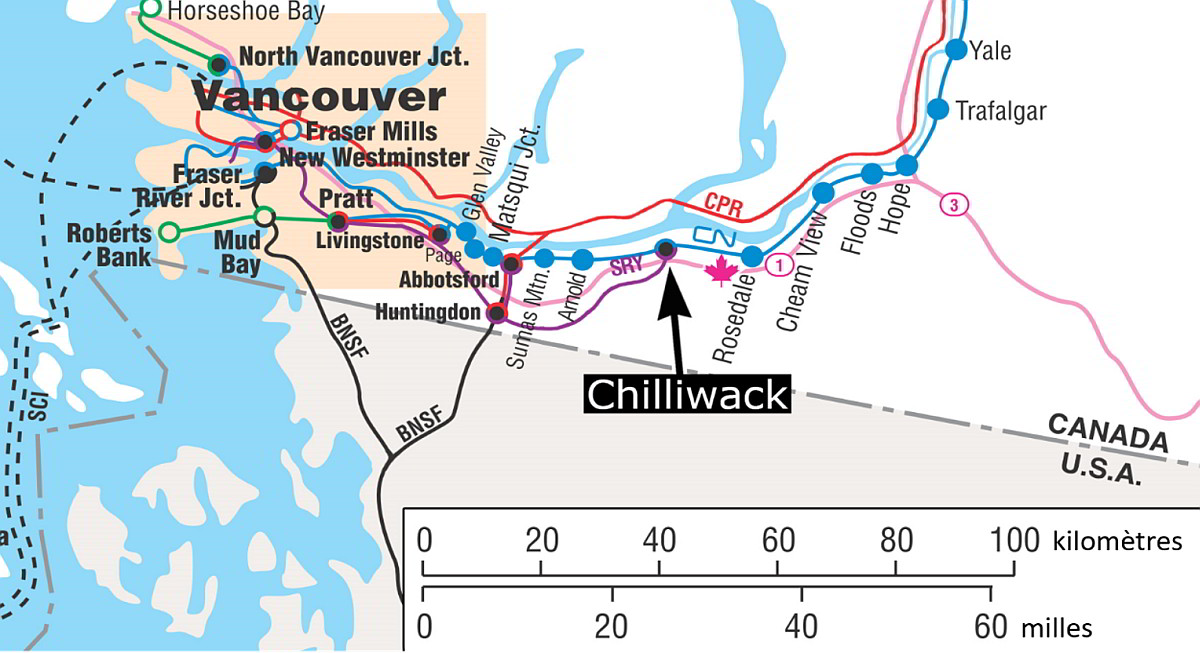 La subdivision de Yale commence au point milliaire 0,0 (Boston Bar, Colombie-Britannique) et s'étend jusqu'au point milliaire 112,8 (Douglas Island à Surrey, Colombie-Britannique). Les mouvements de train dans cette subdivision sont régis par le système de commande centralisée de la circulation autorisé en vertu du Règlement d'exploitation ferroviaire du Canada et supervisés par un contrôleur de la circulation ferroviaire en poste à Edmonton (Alberta). Le trafic ferroviaire est d'environ 40 trains par jour en moyenne. Au lieu de l'événement à l'étude, la vitesse maximale permise pour les trains de marchandises est de 60 mi/h.