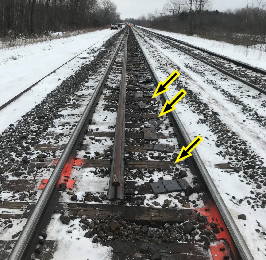 Le 2 février, après la fin des travaux d’entretien près du point milliaire 251,20, 2 trains de voyageurs de VIA Rail et 2 trains de marchandises du CN sont passés sur la voie nord. Peu de temps après, une équipe d’entretien de la voie composée de 4 employés du CN s’est rendue au point milliaire 240,43 pour inspecter les travaux préparatoires effectués en vue du quart du soir suivant.