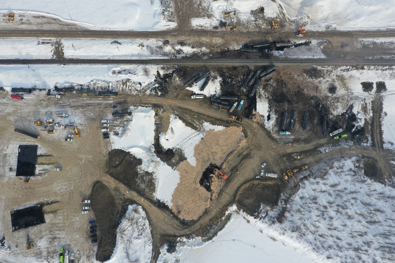 Le 16 février 2019, à environ 2 h 17, heure normale du Centre, le train-bloc U73451-11 de la Compagnie des chemins de fer nationaux du Canada (CN), composé de 108 wagons-citernes chargés de pétrole brut (ONU 1267, classe 3, groupe d’emballage I) et 2 wagons-trémies couverts chargés de sable, circulait vers l’est à environ 49 mi/h dans la subdivision de Rivers, lorsqu’un freinage d’urgence provenant de la conduite générale s’est déclenché près de Saint-Lazare (Manitoba). Une inspection subséquente a permis de constater que 37 wagons-citernes de catégorie TC/DOT 117R avaient déraillé près du point milliaire 197,47. Au total, 17 des wagons-citernes déraillés ont subi des brèches, ce qui a causé le déversement d’environ 815 000 litres de produit. Le déraillement a endommagé ou détruit quelque 1000 pieds de voie. Il n’y a eu aucun incendie ni aucun blessé, et aucune évacuation n’a été requise.