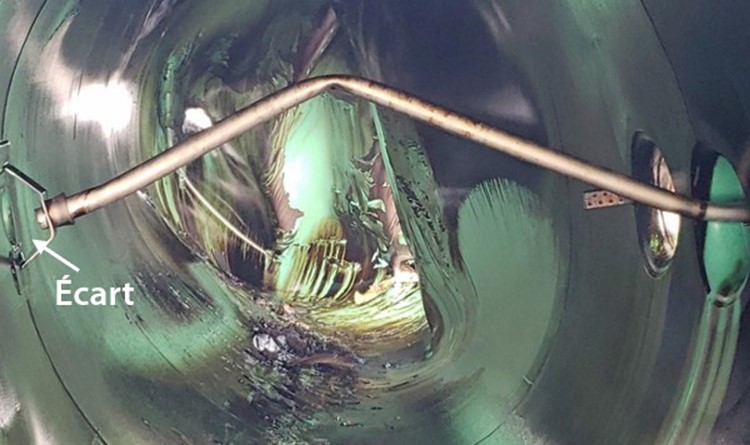 Une partie de l’énergie générée lors du déraillement a été absorbée par l’affaissement de la chemise et du calorifuge des wagons-citernes, ce qui a également protégé contre la perforation de la coque et a diminué le risque d’éclatement ou de rupture hydrostatique de la citerne.
