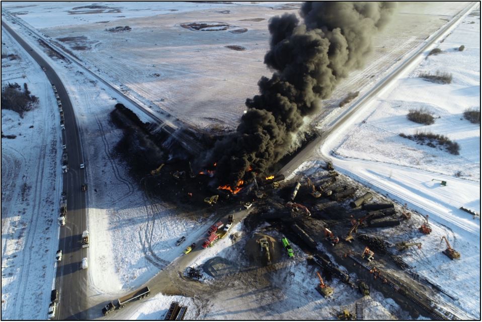 Le remblai du chemin Wolverine a empêché que le produit s’écoule au-delà de la partie principale du déraillement en direction ouest, mais il a également permis que le produit alimente les flammes plus longtemps. En raison de la chaleur extrême des incendies, l’équipement lourd a dû être refroidi à plusieurs reprises, ce qui a également ajouté du temps aux efforts de lutte contre l’incendie. Les 2 principaux incendies ont brûlé pendant environ 24 heures.
