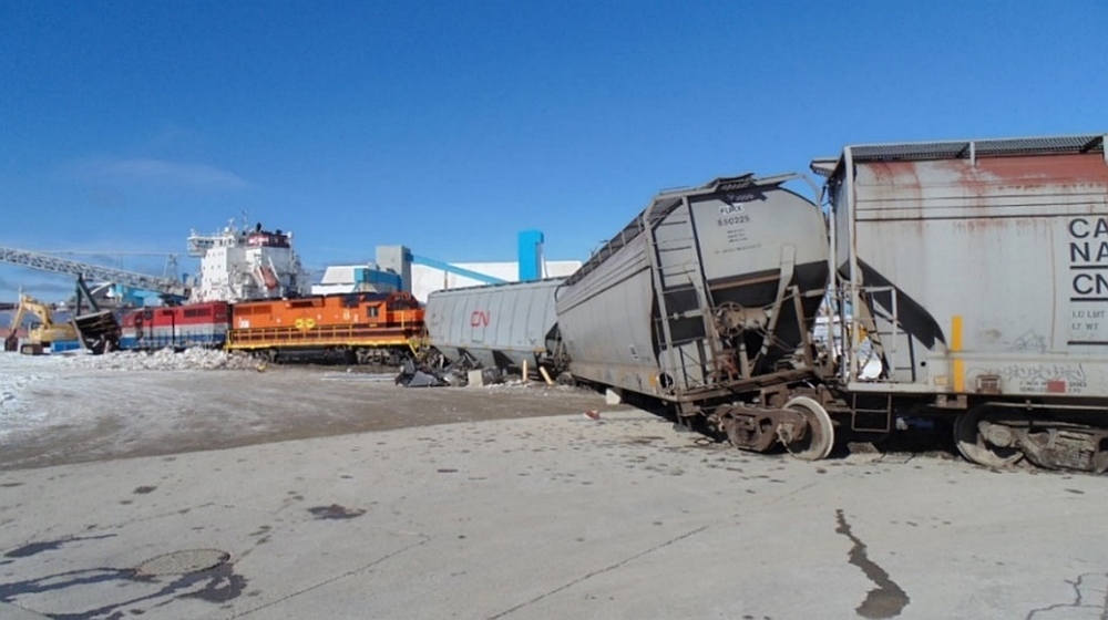 À environ 13 h 25, le train est arrivé à l’extrémité ouest du triage Goderich. Étant donné la longueur du train, l’équipe avait prévu de diviser le train en 2 sections, de diriger chaque section sur des voies de triage distinctes et de déplacer ensuite les locomotives à l’extrémité est du triage en contournant les wagons. De l’extrémité est du triage, les locomotives devaient être attelées aux wagons pour que le train soit ensuite poussé vers l’ouest en direction des silos-élévateurs. Il s’agissait d’une procédure habituelle pour un train de cette longueur.