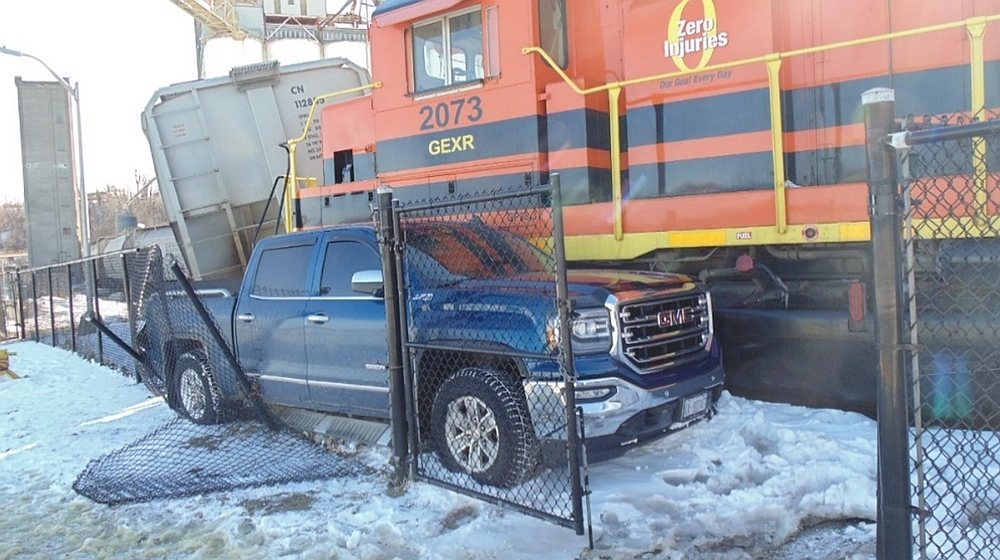 Alors qu’il était parti à la dérive, le train a percuté un tracteur semi-remorque de 18 roues inoccupé, chargé de 38 tonnes céréales, qui était stationné à un passage à niveau dans l’installation. Le tracteur et la semi-remorque ont tous deux été détruits et les céréales se sont répandues au sol (figure 5).