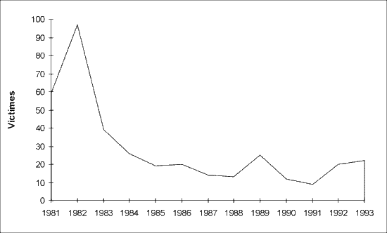 - Certains groupes de causes ont diminué de manière assez constante depuis le début des années quatre-vingts jusqu'à aujourd'hui, d'autres se sont stabilisés avant 1988, et d'autres après. Ce décalage porte à croire qu'un ensemble plutôt complexe de facteurs peut avoir conduit, peut-être par coïncidence, à la configuration caractérisée par une diminution jusqu'en 1988, suivie d'une stabilisation.