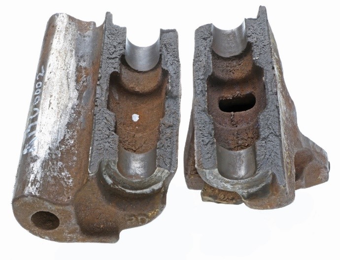 - Le matériau de la mâchoire d’attelage comprenait des corps étrangers et présentait une porosité qui peuvent avoir nui à sa résistance globale.