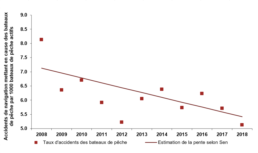 | Année | Taux d'accidents des bateaux de pêche | Estimation de la pente Sen |