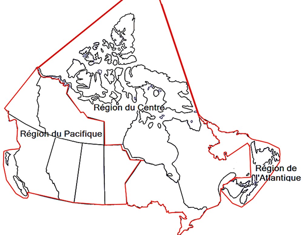 La région du Pacifique comprend la Colombie-Britannique, l’Alberta, la Saskatchewan, le Manitoba et les Territoires du Nord-Ouest et le Yukon au sud du 70e parallèle, ainsi que les eaux adjacentes à ces provinces et territoires.